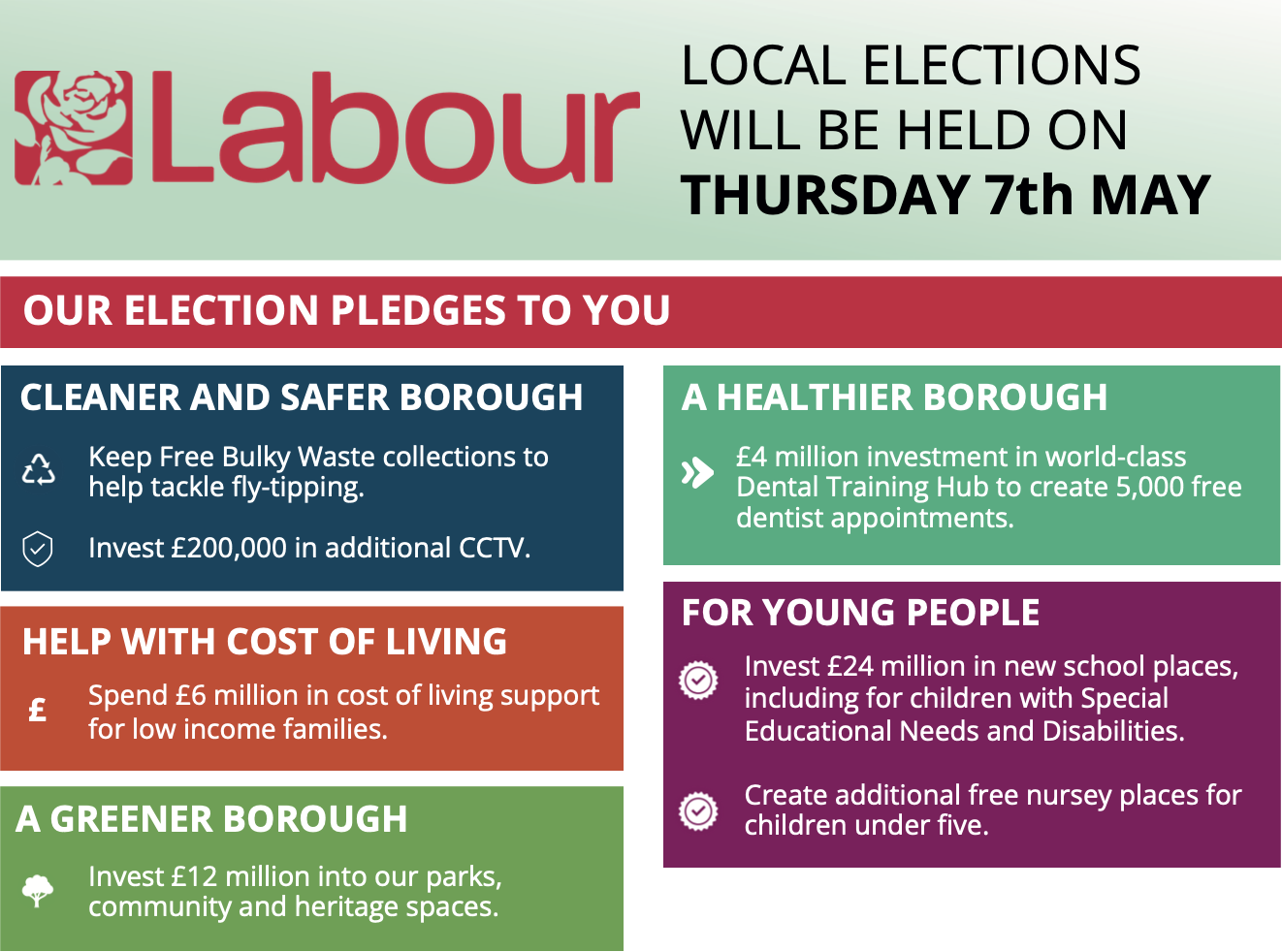 Across the Borough, we’re also represented by three Labour MPs and one London Assembly Member.